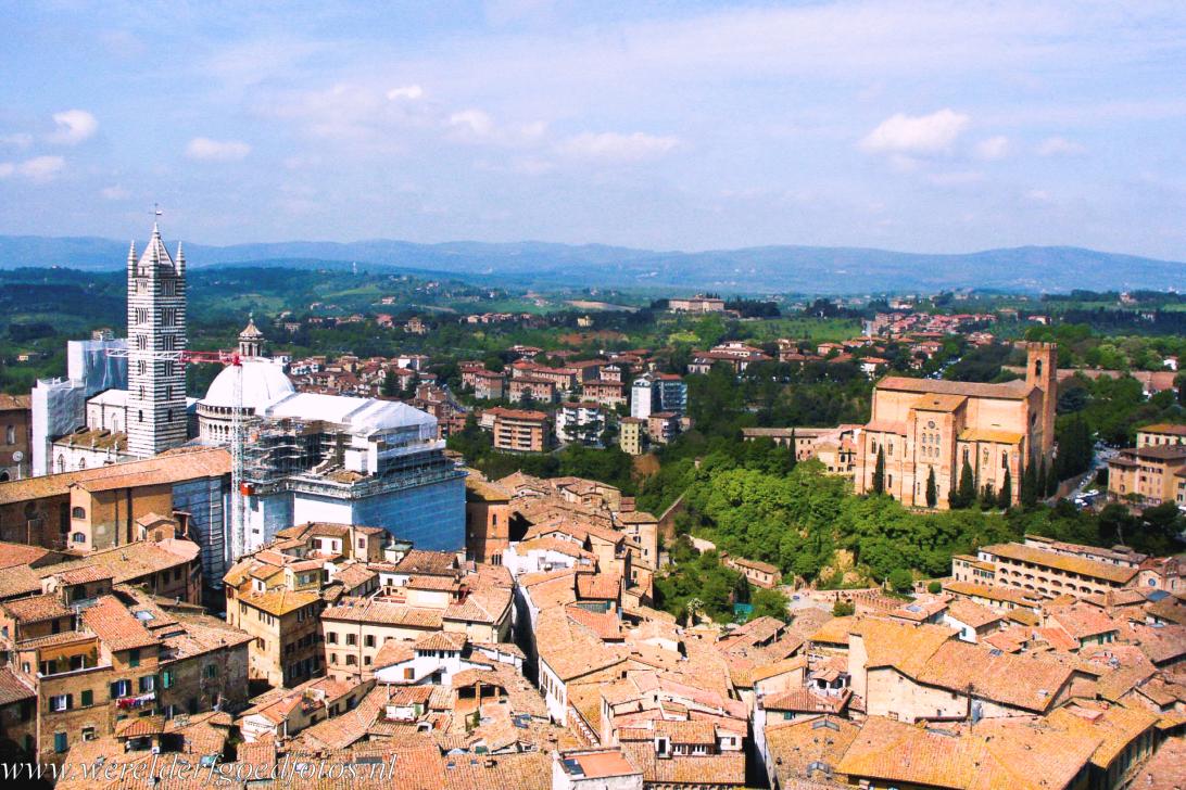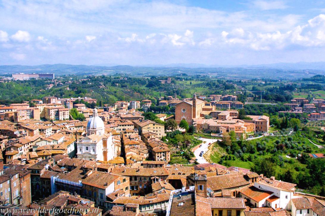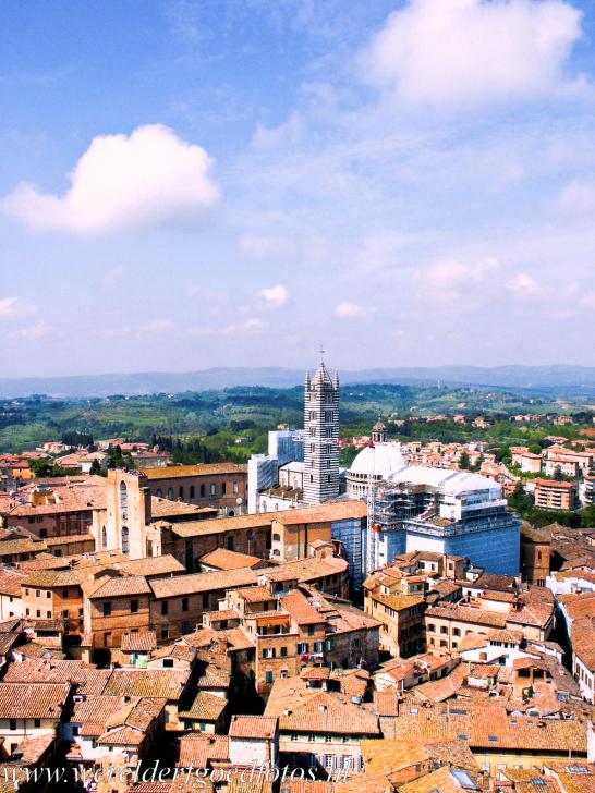 Historic Centre of Siena: Siena is a small medieval town in Tuscany, it is situated about 40 km from San Gimignano and about 70 km from Florence. Together with Florence, Siena had a leading role in the foundation of the Renaissance. Florence was the major rival of Siena in the 13th century. Siena preserved its medieval architecture including the town walls and its city gates. The Piazza del Campo is one of the most beautiful town squares in Europe. The Piazza del Campo in Siena is used for the famous horse race in Italy, Il Palio. The famous Fonte Gaia, the Gaia Fountain, is situated on the Piazza del Campo. The 102 metres high Mangia Tower was built between 1338 and 1348. The top of the Mangia Tower offers breathtaking views over Siena and the surrounding landscape of Tuscany. The historic centre of Siena is dominated by the Siena Cathedral. The cathedral was built in 1215-1263 and constructed of blackish-green and white marble, the symbolic colours of Siena. The Siena Cathedral has an inlaid mosaic floor, the She-Wolf of Siena is among the oldest mosaics in the cathedral. The She-Wolf is the symbol of the Siena. The Historic Centre of Siena gained the status as a UNESCO World Heritage in 1995.