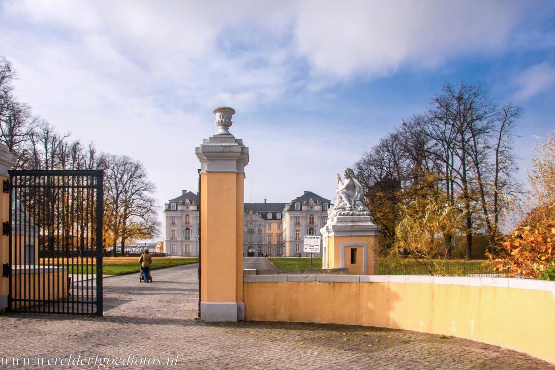 Castles of Augustusburg and Falkenlust at Brühl: The main entrance gate of Augustusburg Castle. Behind the wrought iron gate stands Augustusburg Castle, which is considered one of the first major masterpieces of the Rococo style in Germany. The Castle of Augustusburg is only accessible by guided tour. Falkenlust can be explored on your own. It is not permitted to take any photos inside the castles at Brühl. The town of Brühl is situated about 20 km southwest of the city centre of Cologne.