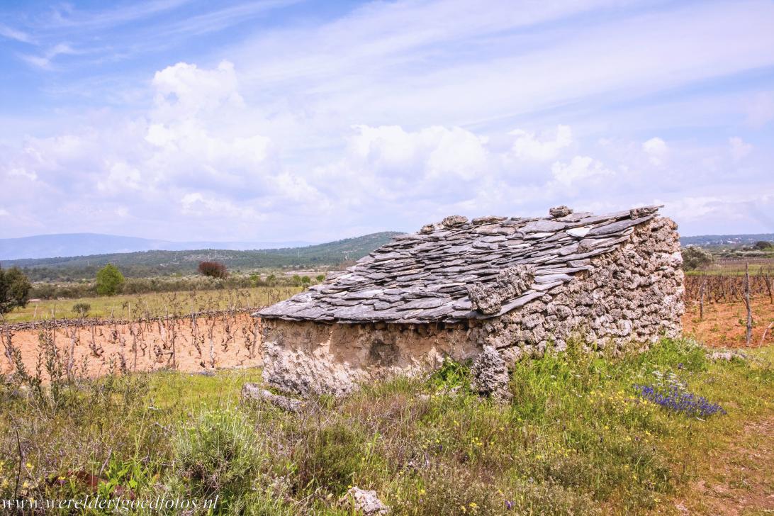 Stari Grad Plain: An ancient trim in a vineyard. Trims are small dry stone field shelters, they offer a safe shelter to farm workers during heavy weather. The trims were built of rough field stones, the roofs were used to dry fruit. Nowadays, the Stari Grad Plain is still famous for its olives and wines. The Stari Grad Plain is a UNESCO World Heritage.