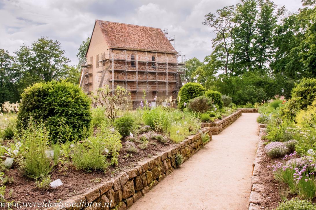 Abbey and Altenmünster of Lorsch: The remaining part of the abbey church is surrounded by a medicinal herb garden. This part of the abbey church belonged to the nave of the 12th-century Nazarius Basilica. This basilica was partially destroyed in 1621 during the Thirty Years' War by Spanish troops. The herb garden of Lorsch Abbey was redesigned according to the principles of an ideal monastery garden. About 200 different species of medicinal plants grow there.