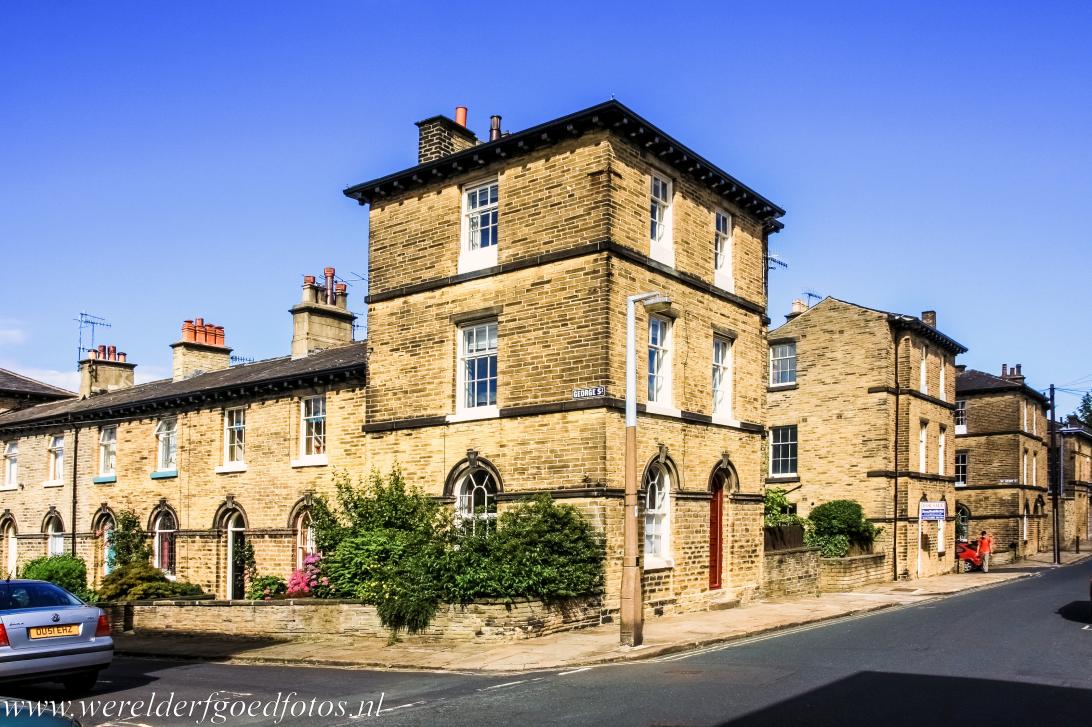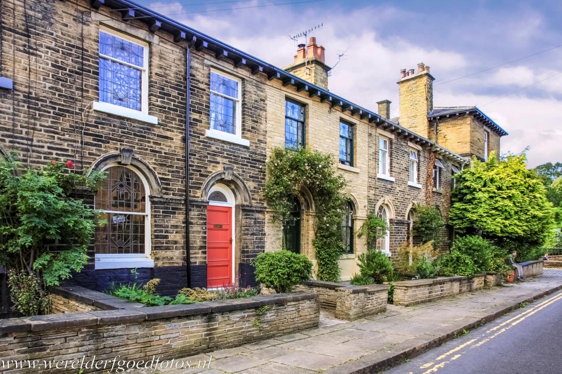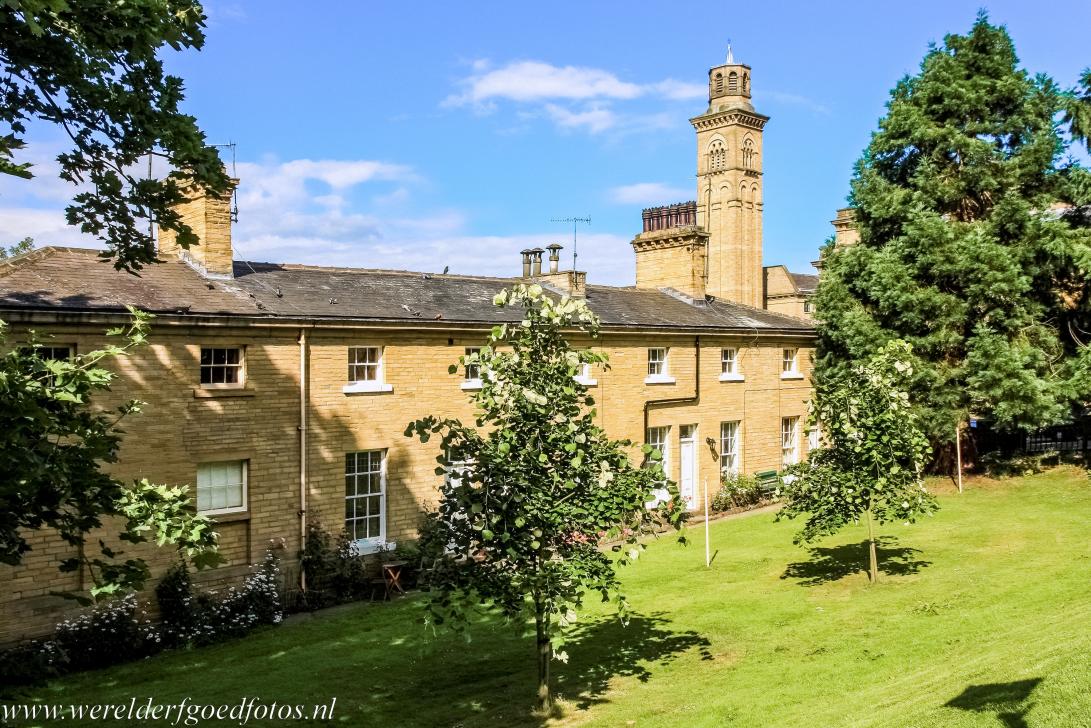 The Victorian model village of Saltaire: The 19th century workers' houses. The village of Saltaire consists of 22 streets, 805 houses and 45 almshouses. The workers of the textile factory of Titus Salt were provided with homes, flower gardens and vegetable gardens, and all necessary local services, a school, a library, a hospital, a public wash house and the almshouses for the elderly.
