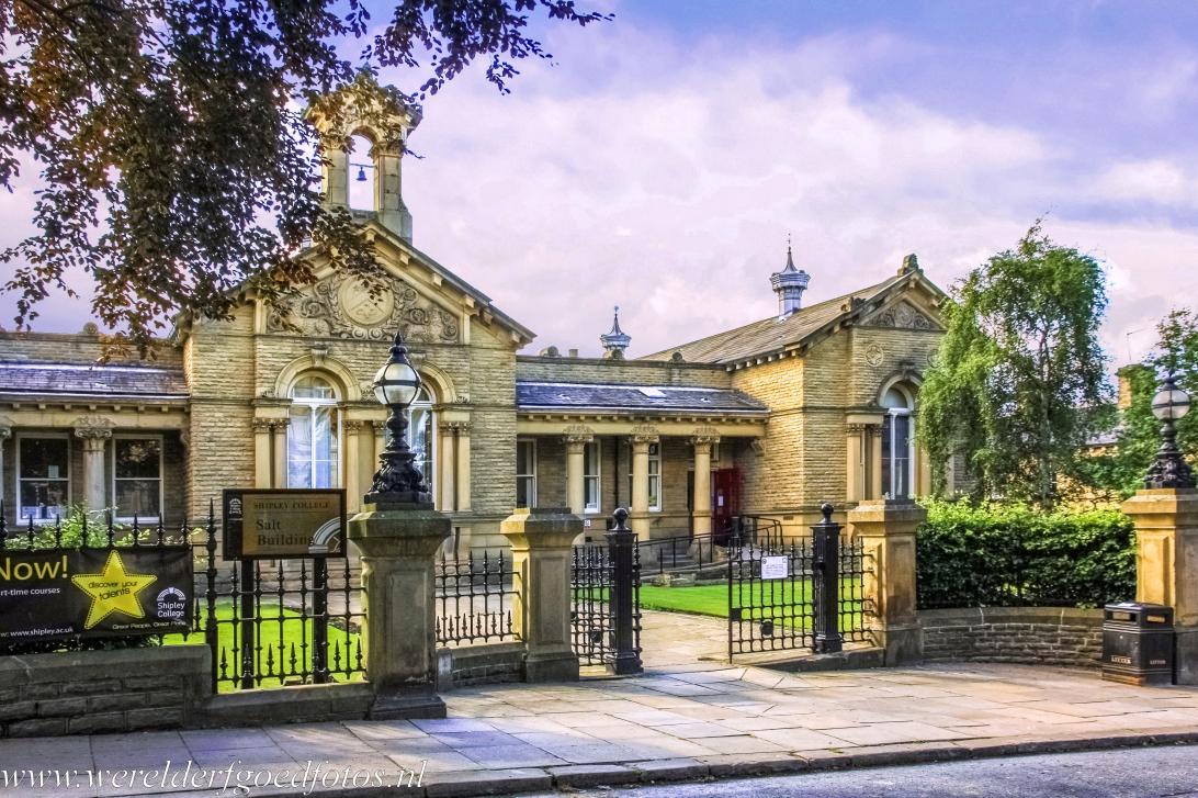 Saltaire: The former Salt Grammar School. The building is nowadays part of the Saltaire Shipley College. The school is located on Victoria Road, opposite the Victoria Hall. The school, which was opened in 1868, was provided with central heating and gas lights. It also has a large playground at the rear of the building. The school was originally divided into two sections, one for the boys and one for the girls.