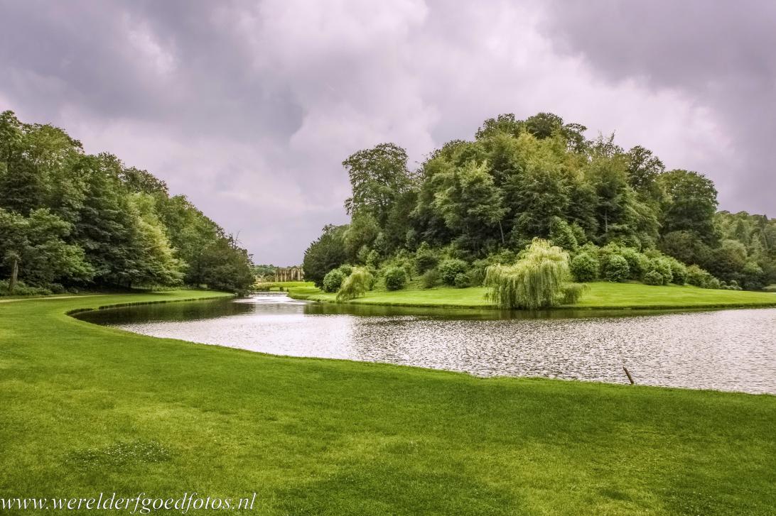 Studley Royal Park including the ruins of Fountains Abbey: The Grey's Walk leading to the ruins of Fountains Abbey, situated in Studley Royal Park. A Georgian water garden created around the ruins of Fountains Abbey in 1720. Fountains Abbey is the largest monastic ruin in Great Britain. Studley Royal Park including the ruins of Fountains Abbey is a UNESCO World Heritage.