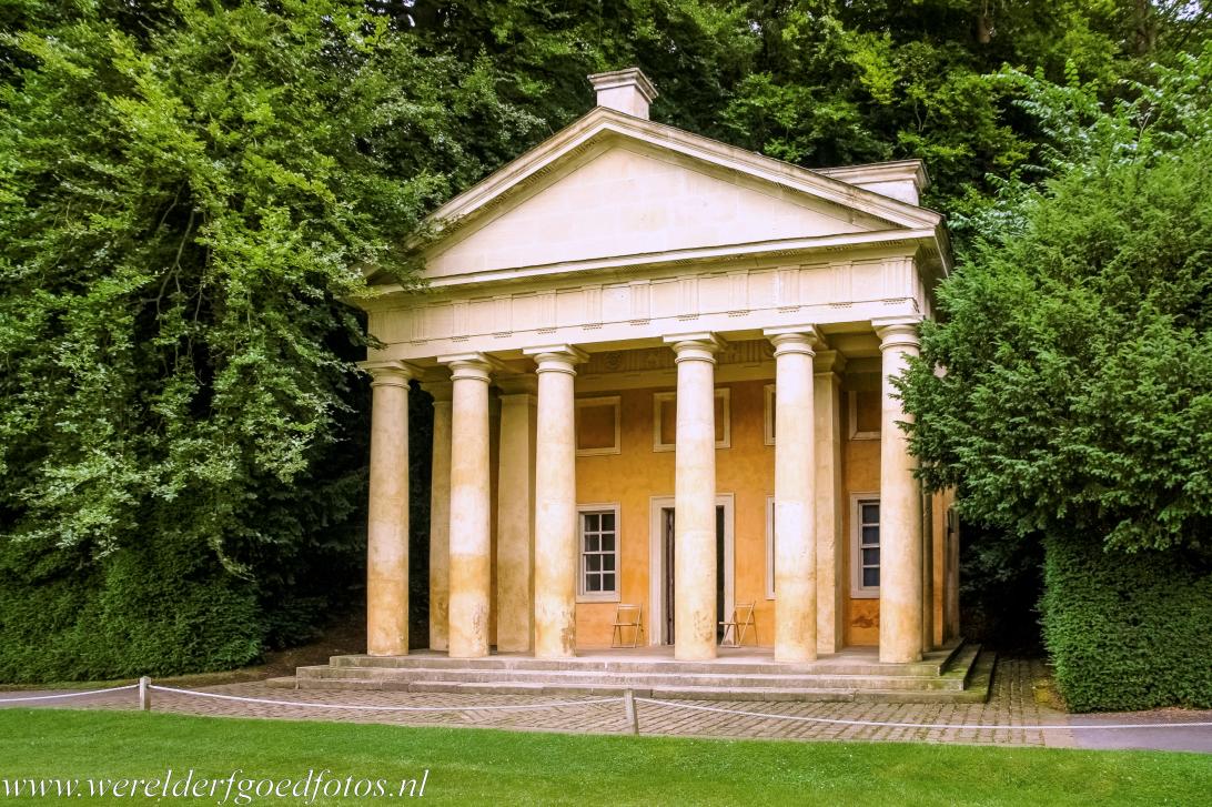 Studley Royal Park including the ruins of Fountains Abbey: The Temple of Piety is probably one of the most famous follies in Studley Royal Park. The temple was built the Neoclassical style in 1729-1730. The Temple of Piety is overlooking Moon Pond. Studley Royal Park is one of the best surviving examples of a Georgian water garden in England.