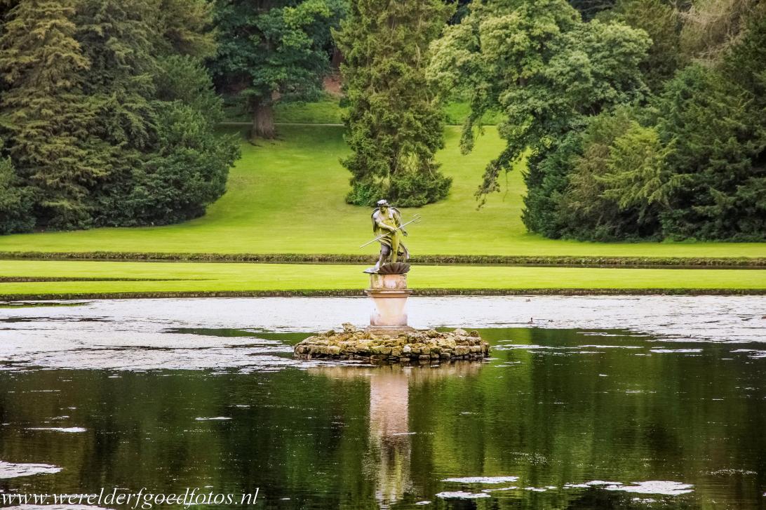 Studley Royal Park including the ruins of Fountains Abbey: The statue of Neptune reflected in the water of the Moon Pond There are several ponds in Studley Royal Park, among them Moon Pond and Half Moon Pond. The park is home to a wealth of flora and fauna. The medieval Deer Park is home to over 500 wild deer such as red deer, fallow deer and sika deer, an Asian species.