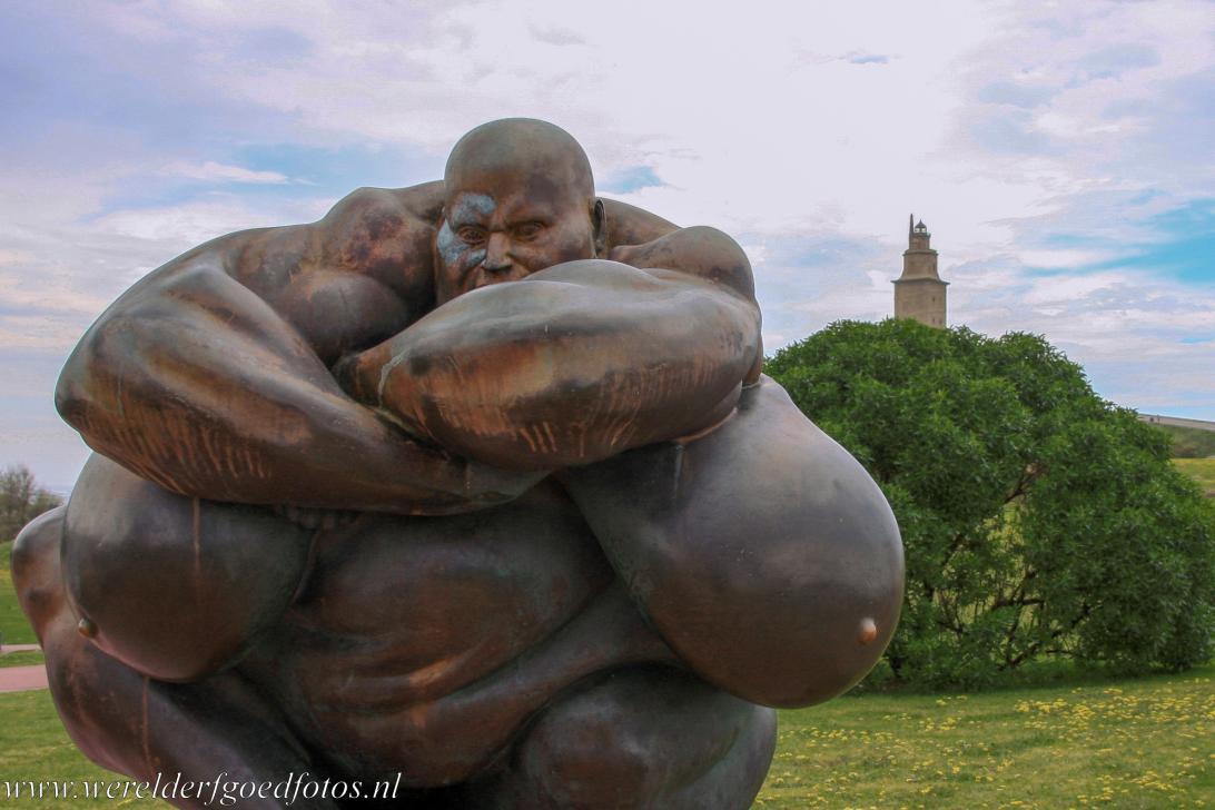 El Guardian sculpture by the Galician artist Ramón Conde, the Tower of Hercules is visible in the background. The young Pablo Picasso joined the School of Arts and Crafts of La Coruña, he was intrigued by the landscape and the environs of La Coruña and the Tower of Hercules, he created several paintings of the Torre de Caramelo (Candy Tower), the name by which he indicated the tower. The Tower of Hercules was inscribed on the UNESCO World Heritage List in 2009.