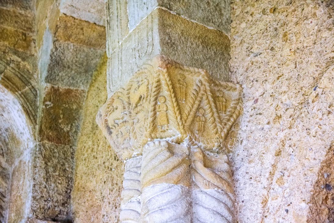Monuments of Oviedo and the Kingdom of the Asturias: The adorned capitals in the San María del Naranco were influenced by the Byzantine style. There are several important decorations in the church. For the first time, a Creek cross seems to be sculpted as the emblem of the Asturian Kingdom, it was also meant as a protection against evil. The San María del Naranco was built as a royal palace and converted into a Roman Catholic church at the end of the 13th century.