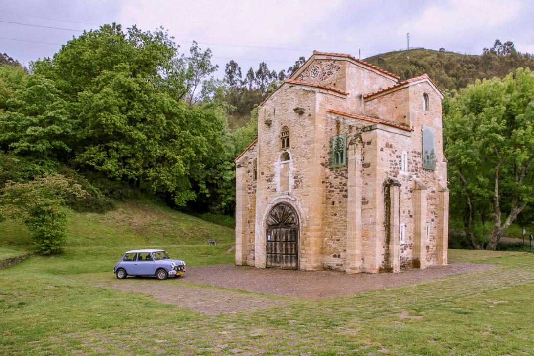 Monuments of Oviedo and the Kingdom of the Asturias: A Mini Authi in front of the San Miguel de Lillo is an Asturian pre-Romanesque church near Oviedo. San Miguel de Lillo served as a royal chapel, connected to the palatial complex that also included the nearby Santa María del Naranco, about one hundred metres away. The Church of San Miguel de Lillo was consecrated in 814 AD. The door jambs were sculpted in the Byzantine style. Half of the building collapsed a long time ago.