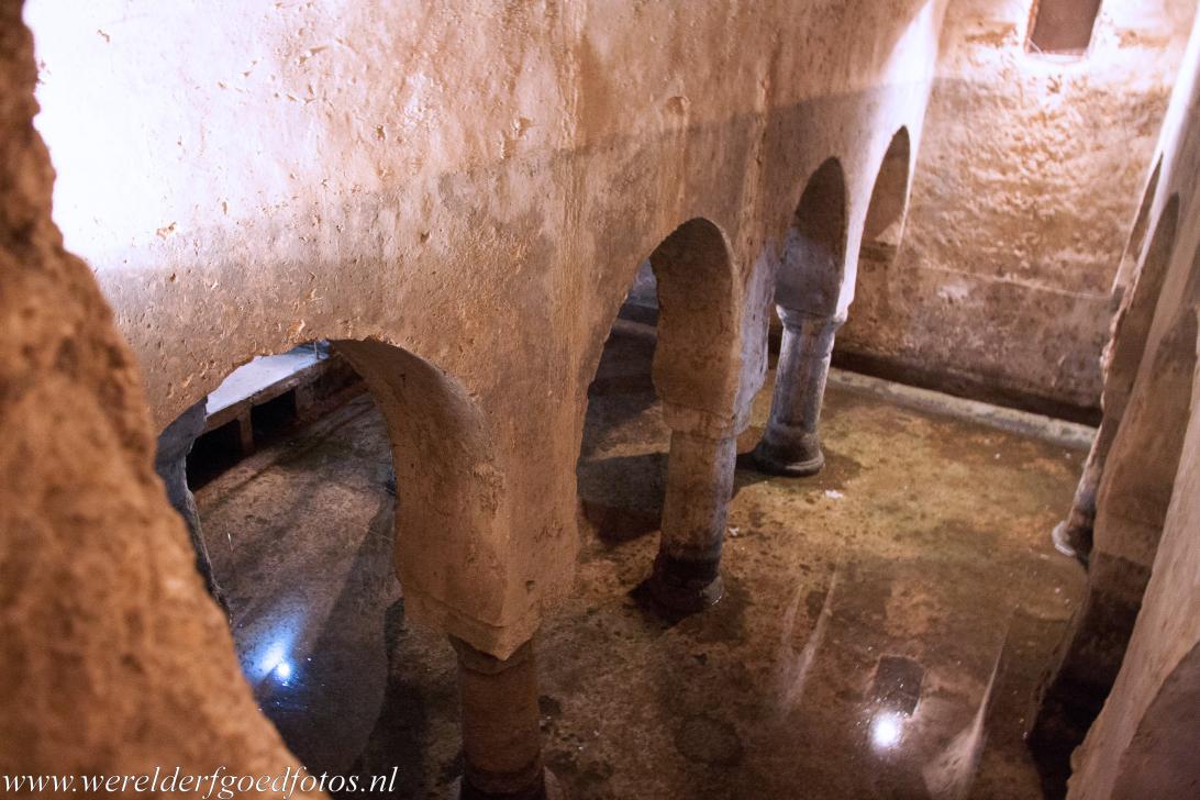 Old Town of Cáceres: The 12th century cistern is a remain of the Almohade citadel. This cistern is one of the largest of its time, the underground cistern was carved out of the rock and used to store rainwater. The cistern lies beneath the Las Veletas Palace. The Las Veletas Palace houses now the Provincial Archaeological Museum of Cáceres, the museum also houses a collection of folk craft typical of Cáceres.