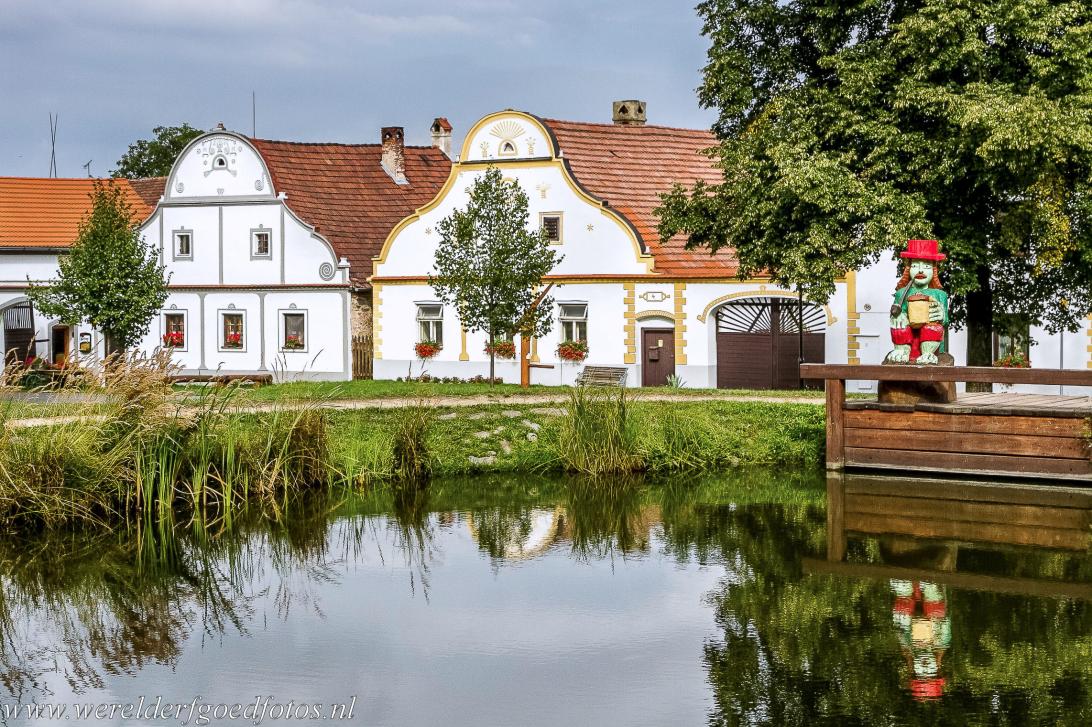 Holašovice Historical Village: Holašovice is a rural village situated in the Czech Republic. The village was first mentioned in 1263. In the 16th century, almost all of the Czech inhabitants of Holašovice were wiped out by the bubonic plague, only two of its inhabitants survived. The tiny village was almost immediatly occupied by settlers from Germany. In the Second World War the attempts made by the German inhabitants to join Holašovice to the Third Reich were successful. In 1946, the enforced withdrawal of the German inhabitants started. The empty houses were inhabited by Czechs and they have restored the traditional Central European village. Holašovice is a characteristic Bohemian village and consists of small houses facing the central village green, with a fish pond and a tiny chapel. The houses date from the 18th and 19th century, they were built in the South Bohemian Folk Baroque style. The chapel of St. John of Nepomuk was built in 1755. Holašovice is situated about 25 km north of the UNESCO World Heritage Český Krumlov. The Holašovice Historical Village was declared a UNESCO World Heritage in 1998.