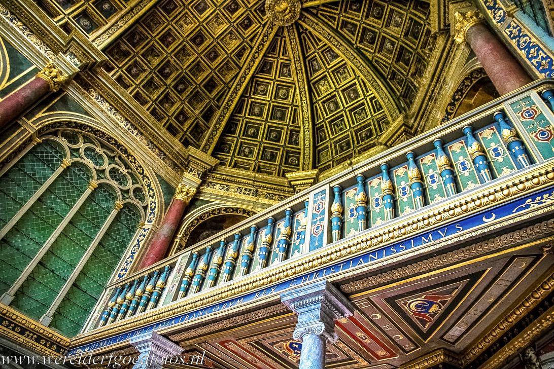 The Palace and Park of Fontainebleau: The Saint Saturnin Chapel was built during the reign of Francis I. The Saint Saturnin Chapel is situated behind the ballroom. The lower chapel was built in the 12th century, but totally rebuilt under Francis I. The windows of the lower chapel were installed during the reign of Louis-Philippe, designed by his daughter Marie. The upper chapel was the royal chapel. The upper chapel and dome of the chapel were decorated by one of the masters of the French Renaissance, Philibert de L'Orme.