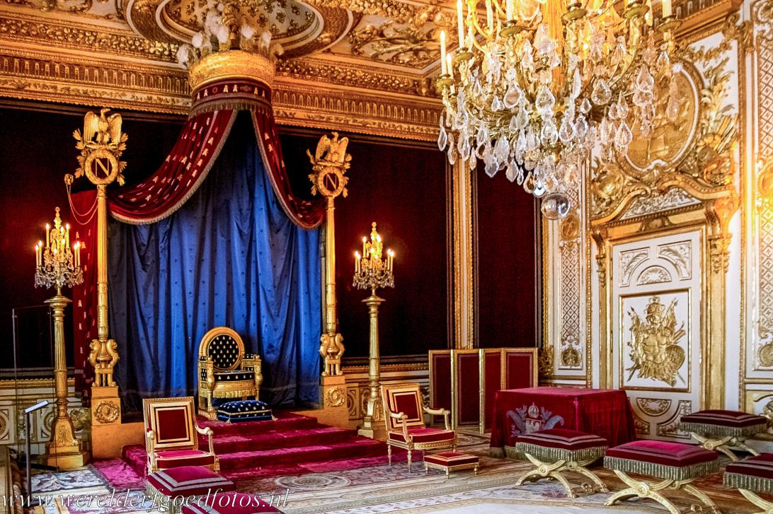The Palace and Park of Fontainebleau: The Throne room. The Throne of Napoleon I is placed on a dais. The throne room is still in its original state. The Palace of Fontainebleau was the location of the historic meeting between Pope Pius VII and Napoleon in 1804. The Pope travelled from Rome to France. It was the intention of Napoleon to be crowned by Pope Pius VII. On the day of the coronation at Notre-Dame de Paris, Napoleon Bonaparte seized the crown from the Pope. He placed it on his own head and crowned himself Emperor of the French.