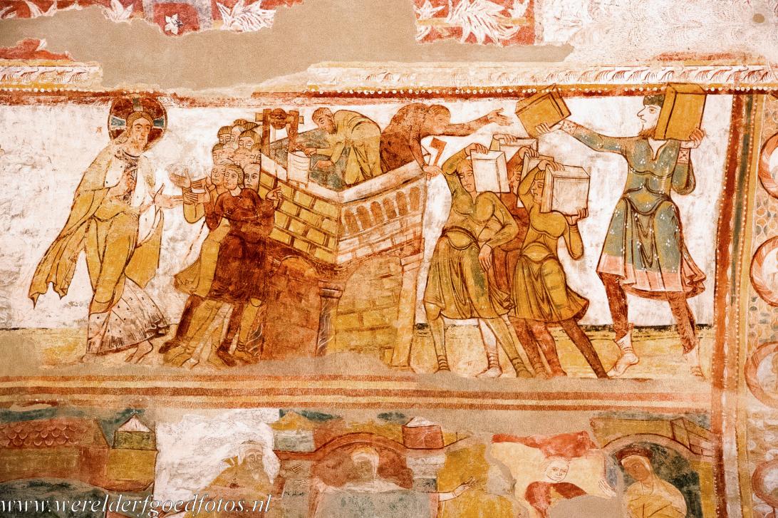 The Abbey Church of Saint-Savin-sur-Gartempe: A mural depicting the Building of the Tower of Babel. Some of the murals are very obvious, such as the Ark of Noah and the Tower of Babel; others are sometimes difficult to interpret. The depiction of clothing in these biblical scenes is remarkable; it illustrate the difference between the clothes of the workers and that of the kings and nobles.