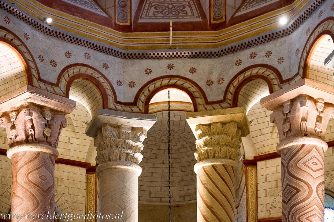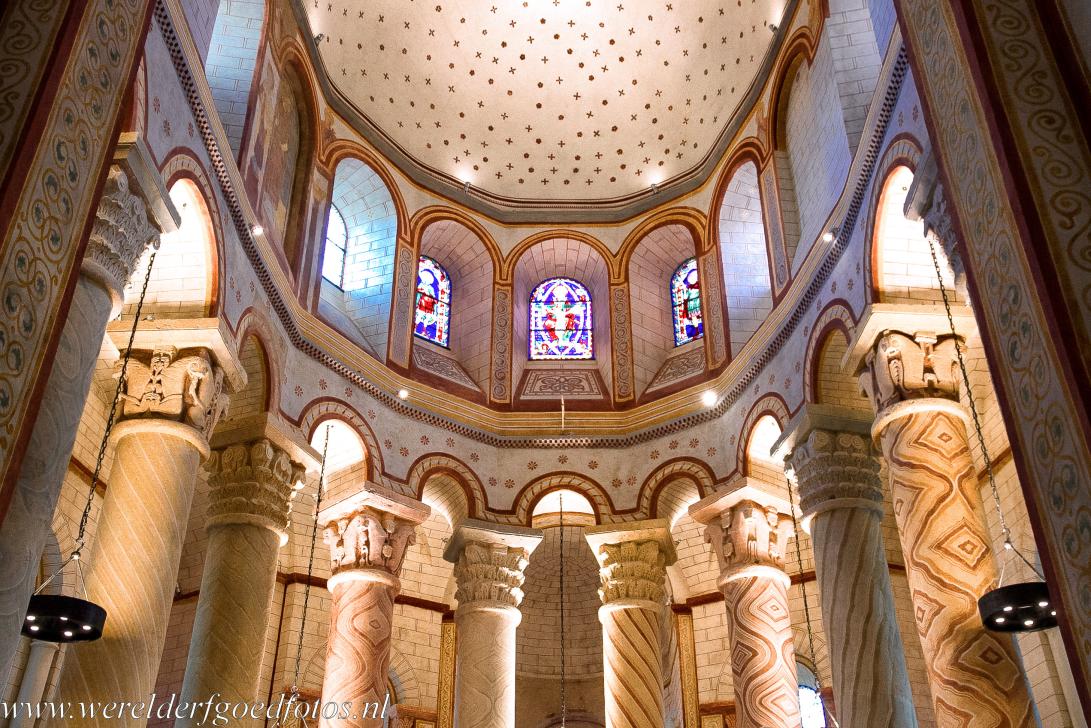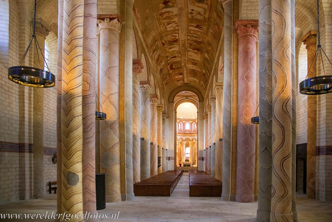 The Abbey Church of Saint-Savin-sur-Gartempe is famous for its Romanesque murals from the 11th and 12th centuries. The beautiful coloured columns in the choir of the church were only painted in the 19th century to resemble marble. The Abbey Church of Saint-Savin-sur-Gartempe is a Roman Catholic Church; it is situated in the small village of Saint-Savin-sur-Gartempe, about 50 km east of Poitiers in the southwest of France.