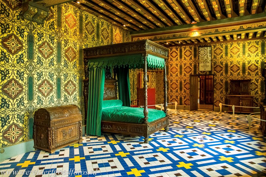 The Loire Valley between Sully-sur-Loire and Chalonnes: The Queen's Chamber at the Château Royal of Blois. Catherine de' Medici died in this room in 1589. Behind the room lies her studiolo. The wood paneling of this small room conceals numerous secret cabinets. They are believed to have been Catherine de' Medici's secret hiding place for poisons. But most certainly, they had a normal purpose and were probably used to hide jewelry, precious objects, and state papers.