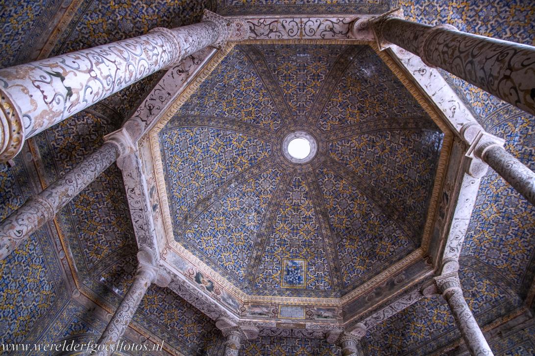Garrison Border Town of Elvas and its Fortifications: The Church of the Dominican Nuns in Elvas was once part of a convent. The church was built in 1557 on the site of an earlier church of the Knights Templar. The church has an octagonal shape. The walls, pillars and octagonal ceiling are covered by 17th century patterned azulejos. The church has a Baroque façade.