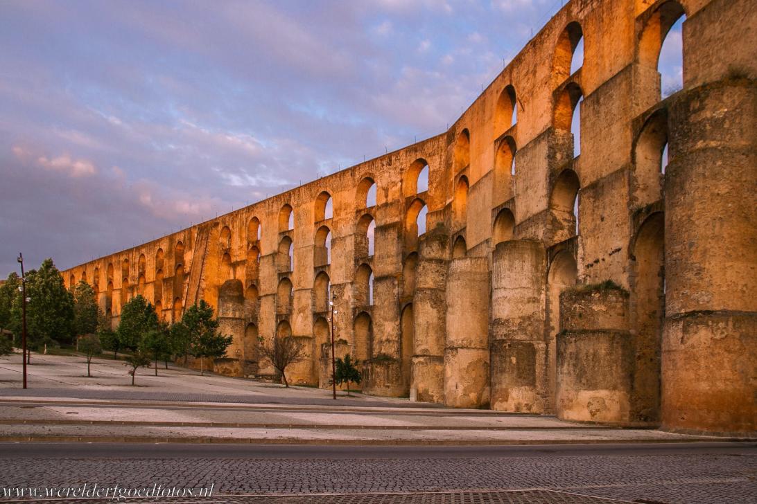 Garrison Border Town of Elvas and its Fortifications: The 16th century Amoreira Aqueduct. It took more than 120 years to build the aqueduct, it was finished in 1622. Some arches are over thirty metres high. The Amoreira Aqueduct is 7,5 km long. For centuries, the aqueduct delivered water to Elvas. Nowadays, it still delivers water to the fountain in the Largo da Misericórdia.