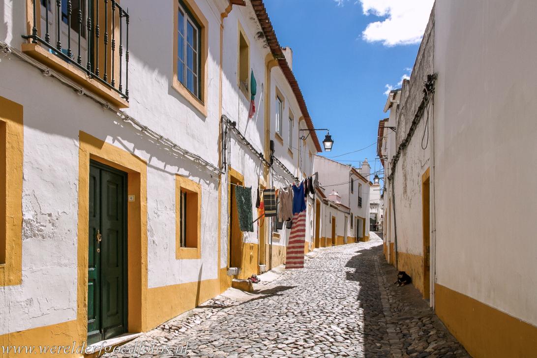 Historic Centre of Évora: A colourful alley in the old Jewish Quarter in Évora. The Jewish Quarter of Évora was one of the largest and richest Jewish quarters in Portugal. During the Middle Ages, the Jews of Portugal lived in their own quarters, known as the Judiarias, their rights were limited. The Jewish Quarter in Évora is situated near Praça do Giraldo, the Giraldo Square.