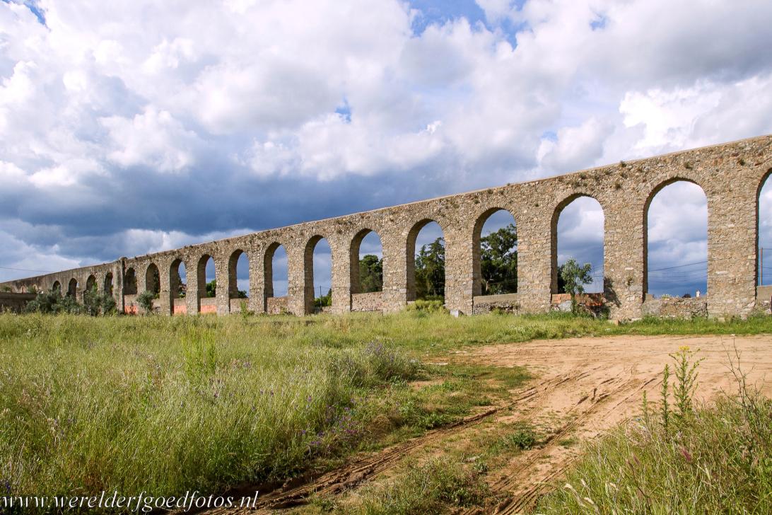 Historic Centre of Évora: The Agua de Prata Aqueduct, the Aqueduct of Silver Water, was built in the 16th century. The aqueduct transported fresh drinking water from the water springs of the Graca do Divor area to the town of Évora. The Agua de Prata Aqueduct is 18 km long, the tallest arch is 26 metres high. Once, the aqueduct was connected to the fountain in Praça do Giraldo.