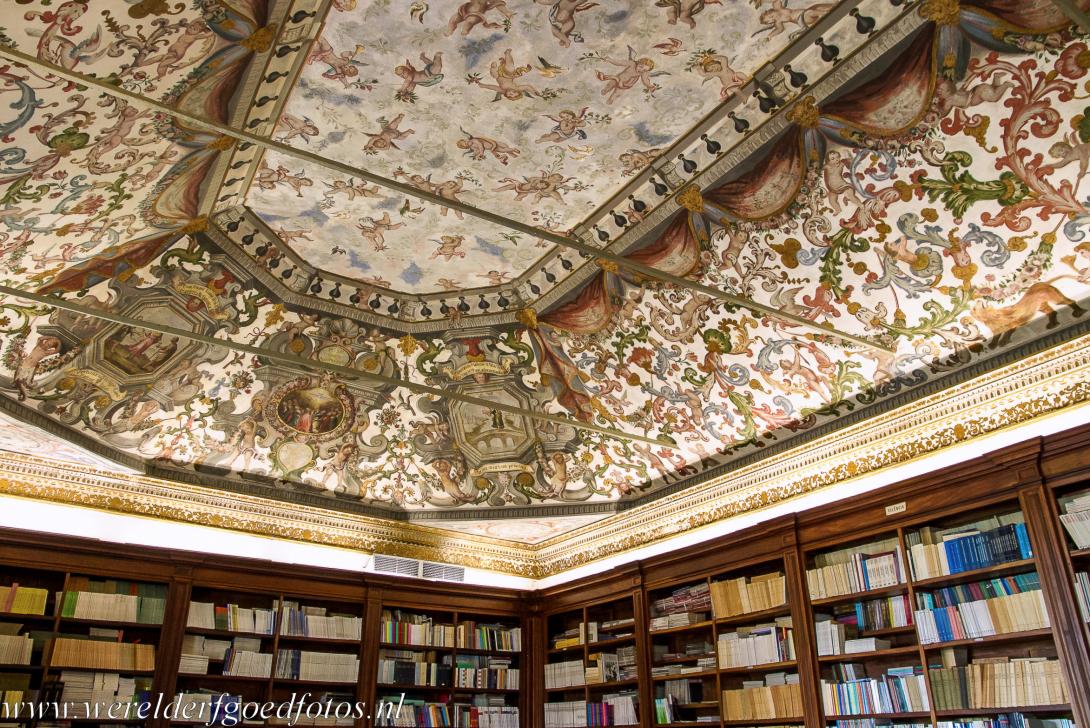 Historic Centre of Évora: The ceiling of the library of the University of Évora was painted around 1709, the central drawing depicts the Blessed Virgin, the Seat of Wisdom. The historic buildings of the university are spread out all over Évora. The Colégio do Espírito Santo, the College of the Holy Spirit, is the most important and most visited building of the University of Évora.