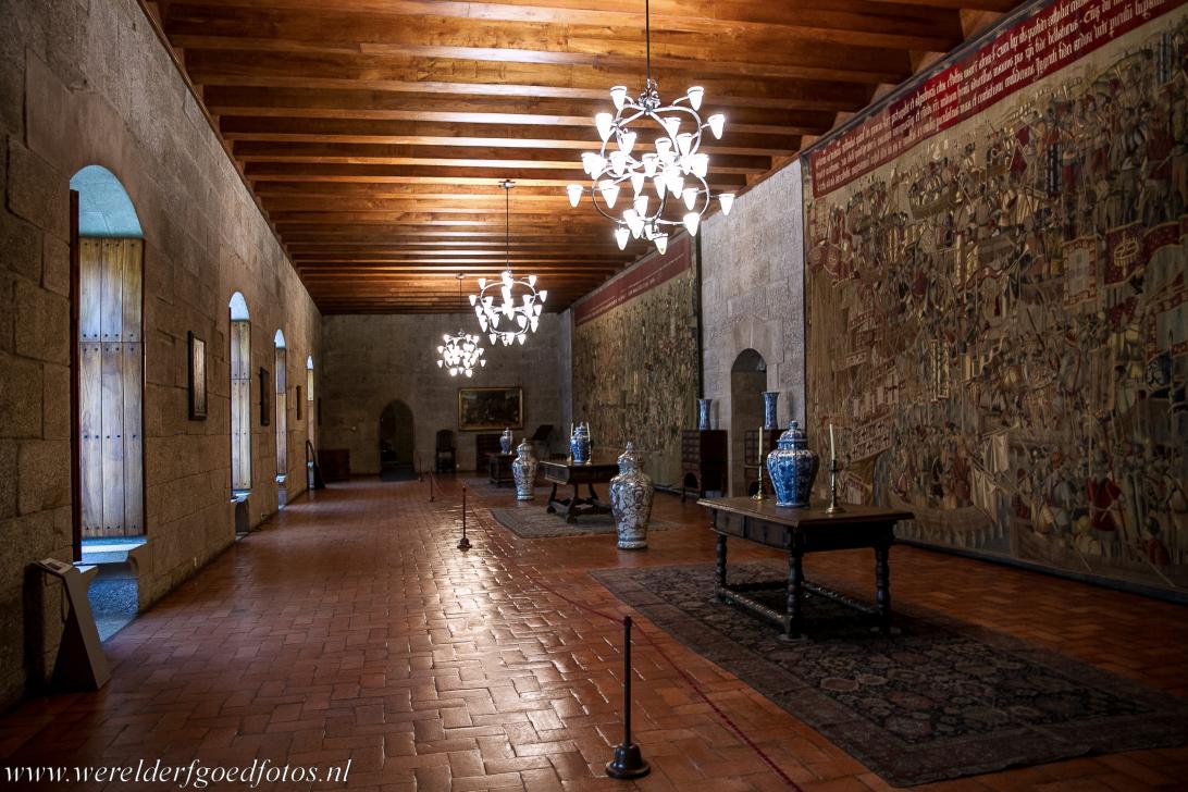 Historic Centre of Guimãraes: The interior of the Palace of the Dukes of Bragança, the medieval palace houses collections of furniture, tapestries, carpets, ceramics and weaponry, some of the furniture was created in the former colonies of Portugal and some of the ceramic objects were acquired in China by the Portuguese East India Company. Nowadays, the palace is a museum.
