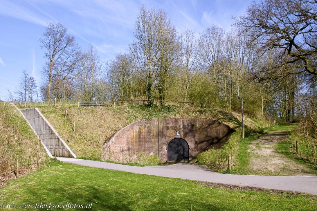 Dutch Water Defence Lines: The National Waterline Museum at Fort bij Vechten, part of the New Dutch Water Line. Since 2015, the fort is a museum and recreation area, at the left hand side the newly created entrance for visitors. The 1,5 metres wide entrance pathway cuts through the six metres high defence mounds.