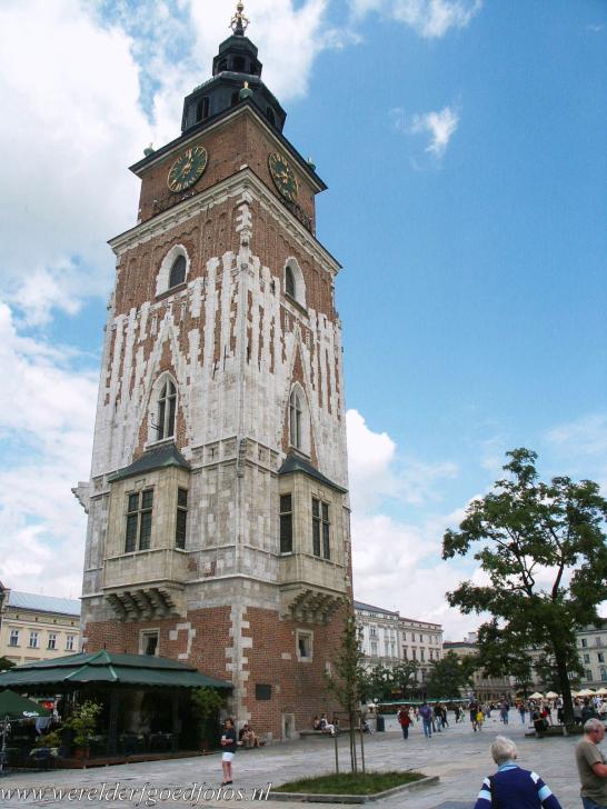 Historic Centre of Kraków: The 13th century Gothic Town Hall Tower. The tower once adjoined the Town Hall of Kraków, the town hall was demolished in 1820. The tower leans 55 cm, caused by a heavy storm in 1703. It is possible to climb the Town Hall Tower of Kraków, the top floor is open to visitors. The tower is 70 metres high, it is located in the Rynek Glówny, the main market square in the historic centre of Kraków, the Rynek Główny is one of the largest market squares in Europe.