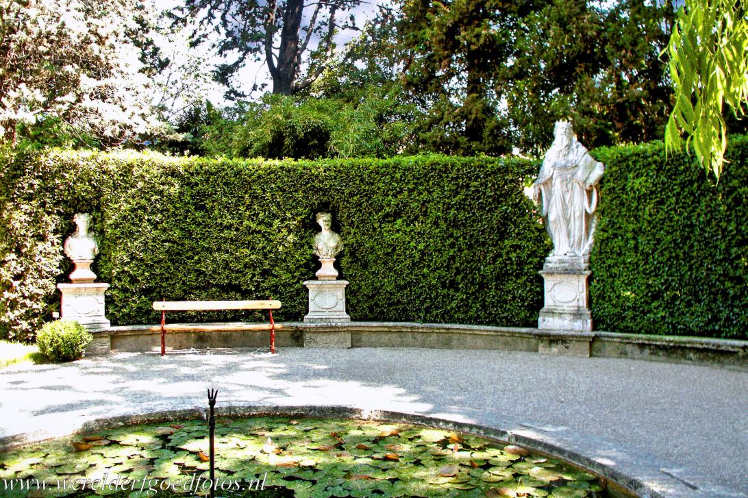 The Fountain of the Four Seasons in the Botanical Garden (Orto Botanico) of Padua. The Italian architect Andrea Moroni was involved it the construction of the botanical garden. The garden is well-known for its historical design and the special plant collections. The garden still preserves its original layout. The plan of the garden is circular, symbolizing the world, and is surrounded by water, representing the ocean. Some ornamental garden elements were added later.