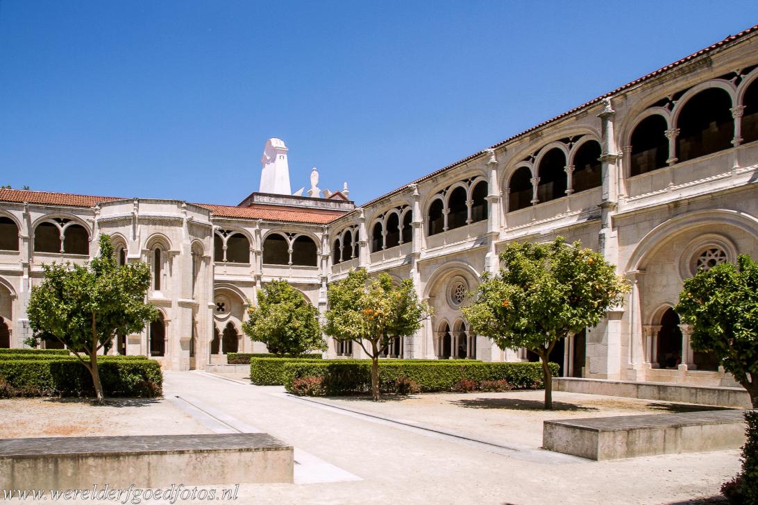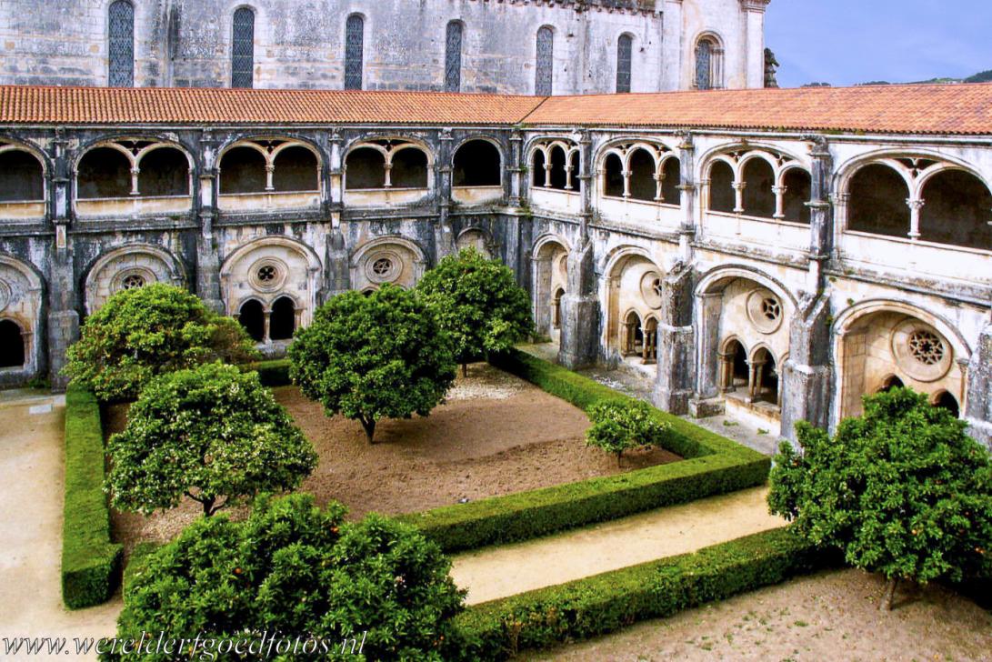 Klooster van Alcobaça: De kloostertuin is beplant met heerlijk geurende sinaasappelbomen. Sinaasappelbomen bloeien en dragen gelijktijdig vrucht. De kloostergang rond de kloostertuin heeft dubbele arcaden, deze kloostergang behoort tot de grootste middeleeuwse cisterciënzer kloostergangen in Europa. De tweede verdieping op de kloostergang werd er later opgebouwd. Het Klooster van Alcobaça kreeg in 1989 de status Werelderfgoed van UNESCO.