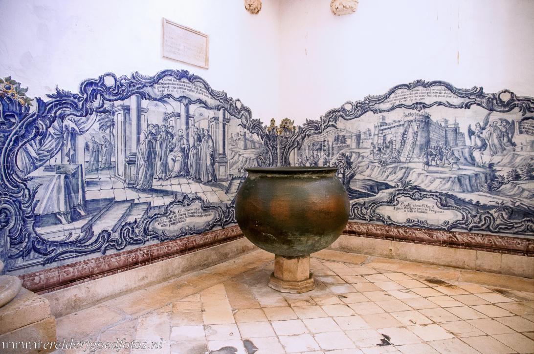 Het klooster van Alcobaça: De enorm hoge schoorsteen en de keuken zijn helemaal betegeld. De schoorsteen wordt ondersteund door acht gietijzeren zuilen. Het waterbassin in de keuken is een goed voorbeeld van de vindingrijkheid van de monniken, het bassin bevatte water, dat werd aangevoerd door een systeem van drie kanalen, het water kwam uit een zijrivier van de rivier de Alcôa. De kanalen leverden vers stromend water en eveneens verse vis.