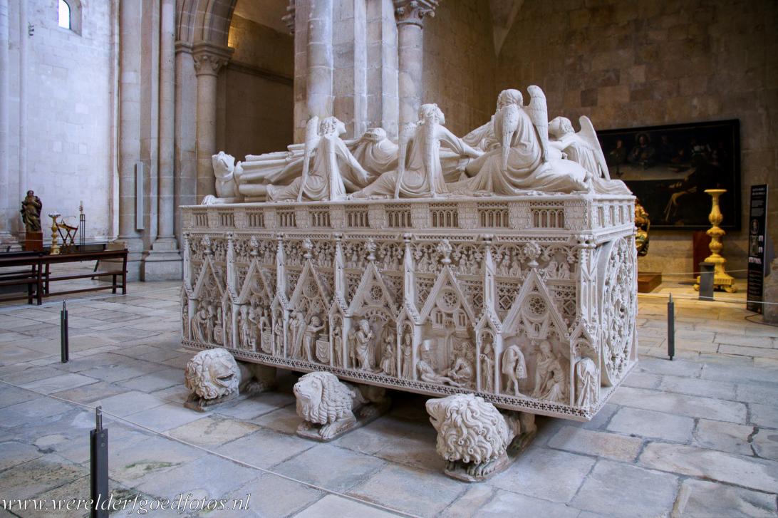 Klooster van Alcobaça: De tombe van koning Pedro I wordt gedragen door zes gebeeldhouwde leeuwen. De tombes van koning Pedro I en zijn geliefde Inês de Castro staan in het transept van de kloosterkerk. Het beeldhouwwerk op de tombes laat het tragische liefdesverhaal van koning Pedro I en zijn geliefde Inês de Castro zien. Koning Afonso IV gaf opdracht om Inês de Castro te vermoorden om te verhinderen dat zijn zoon prins Pedro met haar zou trouwen.