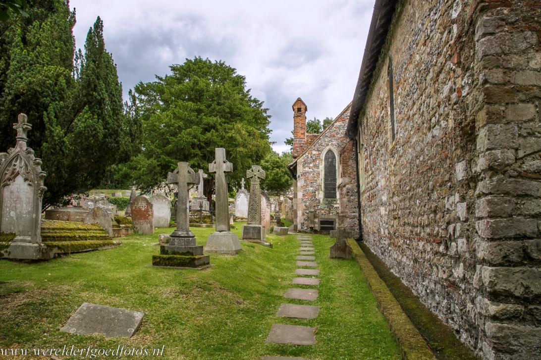 Het schip van het kerkje van St. Martin's Church in Canterbury, dit gedeelte van het schip was de oorspronkelijke kerk van voor de uitbreiding en het eerste Angelsaksische bouwwerk, dat werd gebouwd van stenen in plaats van hout. Aan de steensoort te zien, kwamen sommige stenen uit een steengroeve in de omgeving van Parijs. Het dak dateert uit de 14de eeuw.