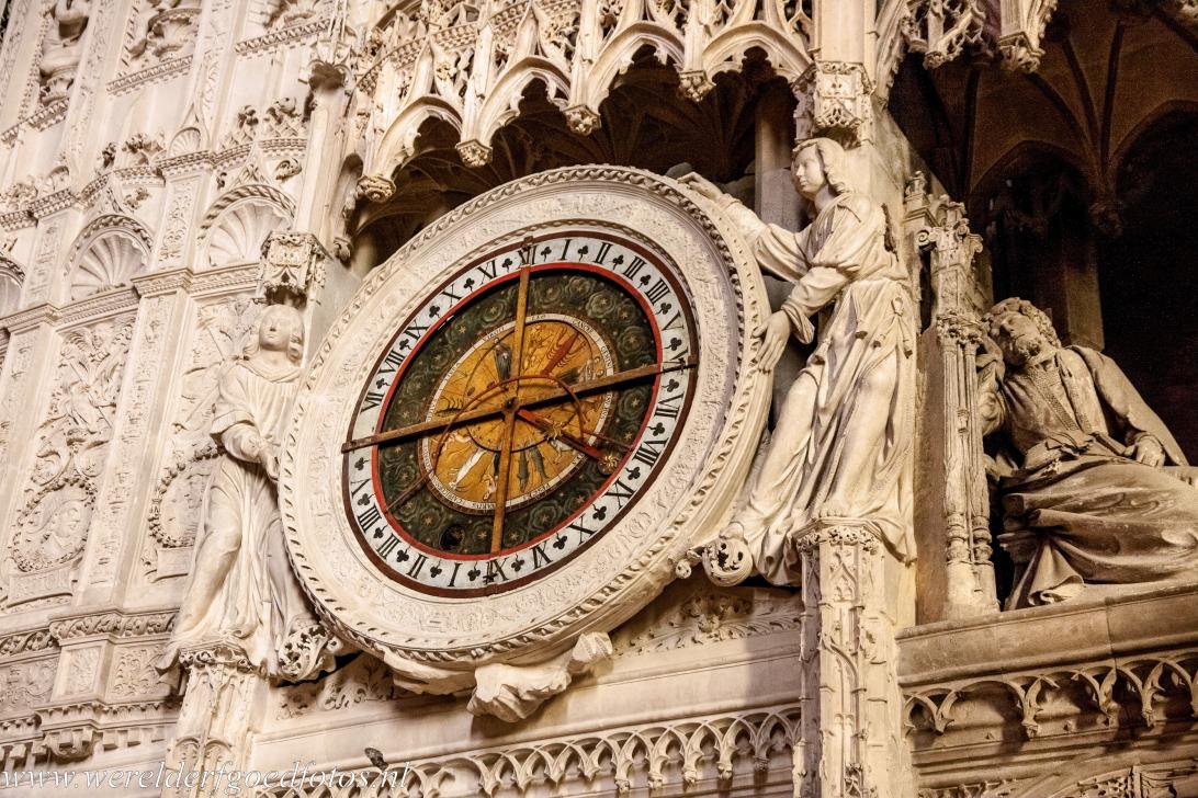 Kathedraal van Chartres: De 16de eeuwse astrologische klok op het koorhek gaf niet alleen de tijd aan, maar ook de dagen, de maanden, de tijd van de zonsopkomst en zonsondergang, de maanstanden en de stand van de dierenriem. Het binnenwerk van de klok werd in 1793 deels verwoest. Het beeldhouwwerk op het koorhek toont scènes uit het leven van Jezus en Maria.