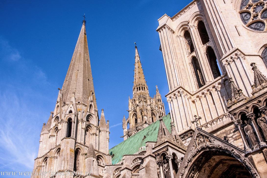 De torens van de kathedraal van Chartres verschillen zowel in hoogte als uiterlijk. De romaanse zuidelijke toren is circa 105 meter hoog en werd rond 1140 gebouwd. De flamboyant gotische noordelijke toren is circa 113 meter hoog, ze werd gebouwd op de resten van een oudere toren. De kathedraal van Chartres werd in 1979 uitgeroepen tot een Werelderfgoed van UNESCO.