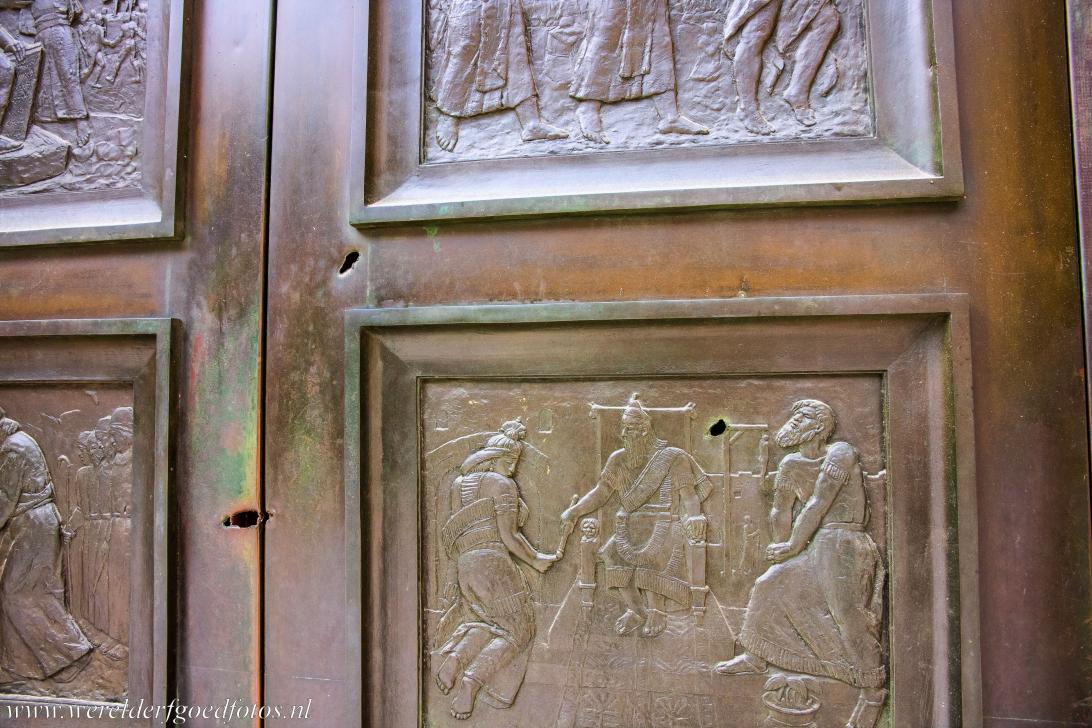 De St. Jacobuskathedraal in Šibenik: De bronzen deuren werden in 1991 tijdens de Kroatische Onafhankelijkheidsoorlog (1991-1995) beschadigd. Er zitten meerdere kogelgaten in de deuren en muren van de kathedraal. De deuren werden in 1967 gemaakt door Grga Antunac, een uit Šibenik afkomstige beeldhouwer. Na de oorlog heeft het internationale en Kroatische experts jaren gekost om de schade aan de St. Jacobuskathedraal in Šibenik te herstellen. De kogelgaten zitten nog in de deur als een herinnering aan de oorlog.