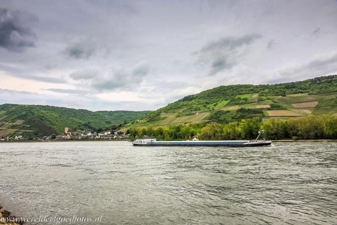 Boven Midden-Rijndal: Een rijnaak op de Rijn bij Lorch am Rhein, ooit de hoofdstad van de voormalige Vrijstaat Flessenhals. De Rijn is al meer dan twee eeuwen de belangrijkste route voor het goederenvervoer tussen Centraal- en Noord-Europa. De rijnaak wordt al eeuwenlang gebruikt als vrachtschip op de Rijn. Ooit vormde de Rijn de noordgrens van het Romeinse Rijk; veel steden langs de rivier werden gesticht door de Romeinen, ook zij gebruikten de Rijn al als transportroute.