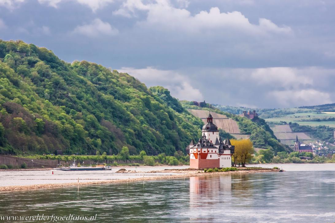 Boven Midden-Rijndal: Het pittoreske kasteeltje Pfalzgrafenstein ligt in het Rijndal bij het dorpje Kaub. Dit bolwerk werd gebouwd op het eilandje Falkenau in de Rijn. Pfalzgrafenstein is van alle tolkastelen langs de rivier het beroemdst. Op de steile hellingen rond Kaub liggen uitgestrekte wijngaarden. Het Midden-Rijndal staat bekend om haar legenden, waarvan die van de Loreley het beroemdst is. Deze regio had een grote invloed op het werk van componisten, schrijvers en kunstenaars.