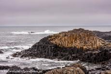 Giant's Causeway en Causeway Coast: De zeshoekige basaltzuilen van de Middle Causeway. De basaltzuilen van de Giant's Causeway verdwijnen in de oceaan en lopen over de bodem verder naar het onbewoonde Schotse eiland Staffa en komen daar bij Fingal's Cave weer boven water. De basaltformaties zijn circa zestig miljoen jaar geleden ontstaan door een vulkaanuitbarsting. De Giant's Causeway en de Causeway Coast vormen een natuurlijk Werelderfgoed van UNESCO.
