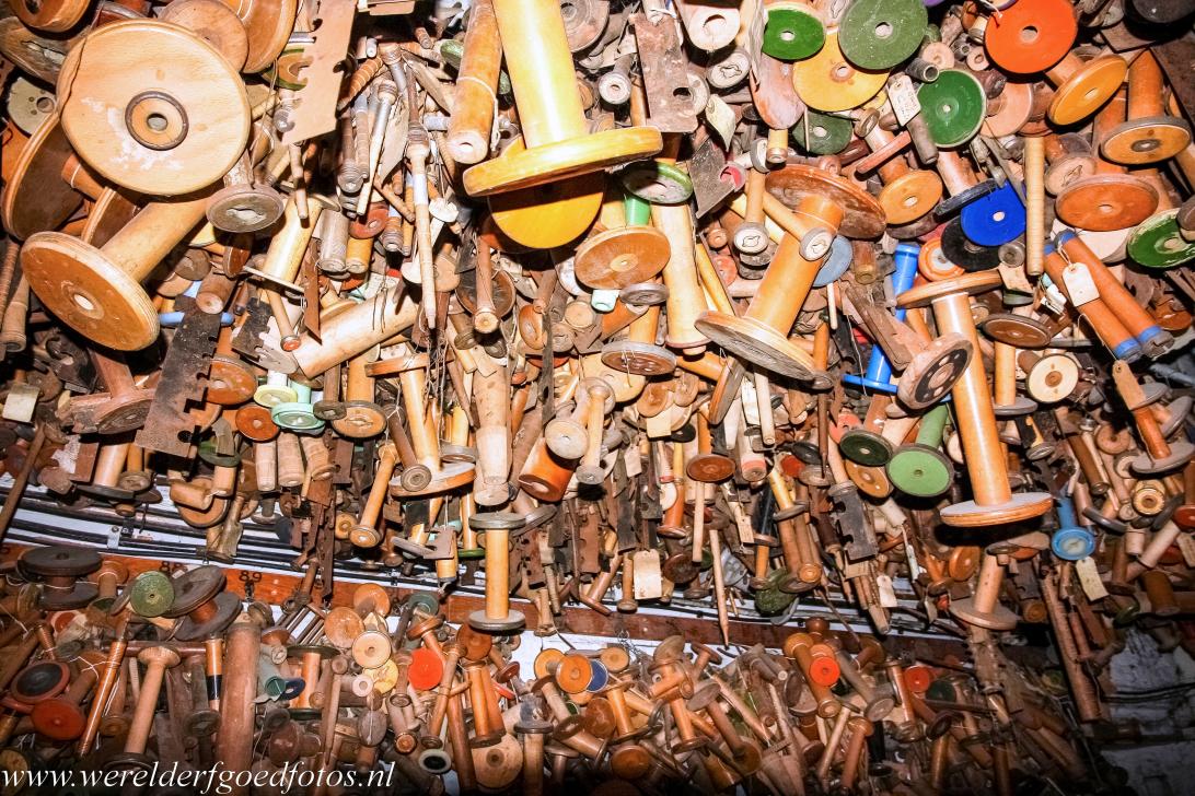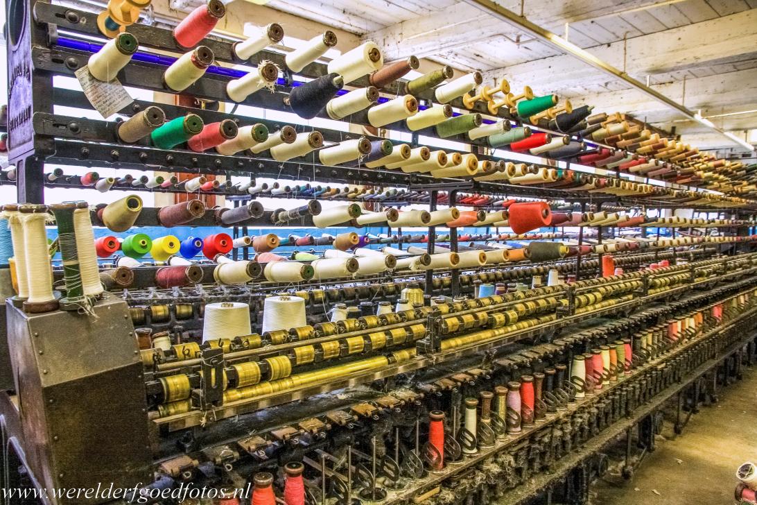 Derwent Valley Mills: Een ringspinmachine in de Doubling Room van Masson Mills. Ringspinnen is een van de oudste machinale methodes om vezels, zoals katoen, te spinnen om een draad te maken. Deze ringspinmachine dateert uit 1922. Het Werelderfgoed Derwent Valley Mills bestaat uit o.a. een stoomgemaal, een stoomspoorlijn, textielfabrieken, wevershuizen en een kasteel.