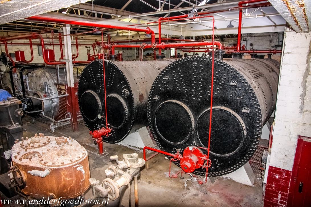 Derwent Valley Mills: Het stookhuis van the Masson Mills. Het stookhuis werd gebouwd in 1908. De twee enorme kolengestookte ketels (rechts) produceerden stoom om de machinerie van de katoenfabriek aan te drijven. In 1950 werden de kolengestookte ketels vervangen door nieuwe oliegestookte ketels (links). De kolengestookte ketels werden verbouwd tot olieketels.