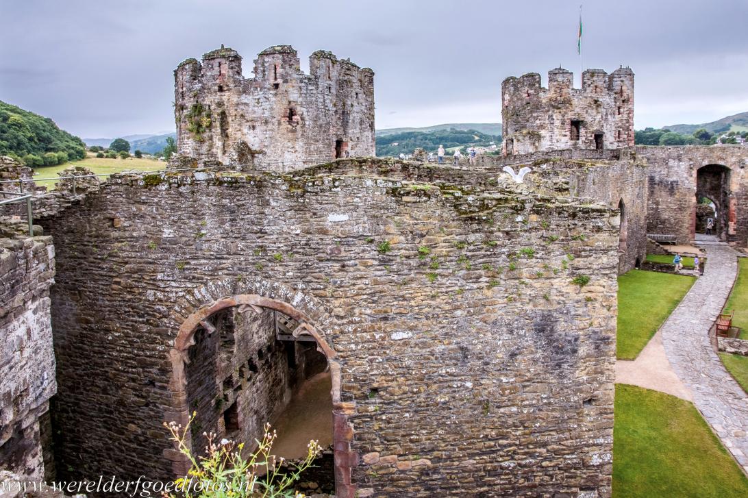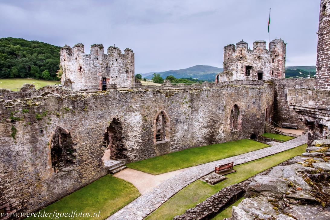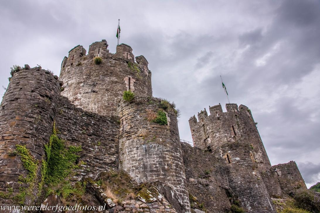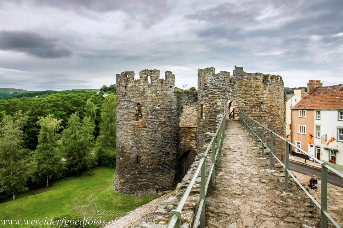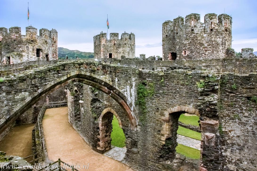 Kastelen en stadsmuren van King Edward in Gwynedd: De muren van de stad Conwy en kasteel Conwy. Kasteel Conwy vormt met de stadsmuren van Conwy een 1.3 km lange aaneengesloten muur rond de stad. Over de muren van Conwy kan een wandeling worden gemaakt, je passeert drie stadspoorten en eenentwintig torens van de stad en het kasteel van Conwy.