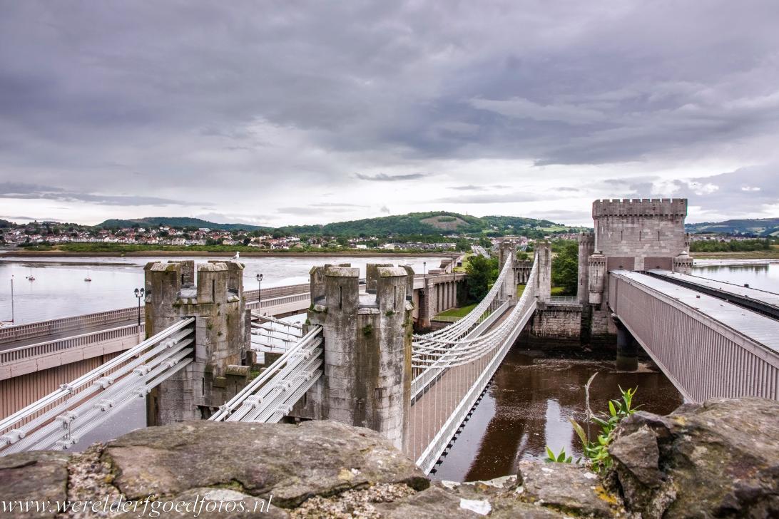 Kastelen en stadsmuren van King Edward in Gwynedd: Bij kasteel Conwy ligt een hangbrug over de rivier de Conwy. De hangbrug werd in 1826 ontworpen door Thomas Telford, hij was een van de meest beroemde civiel ingenieurs van zijn tijd. De brug was een van de eerste hangbruggen voor verkeer ter wereld. Voor de bouw van de brug werden delen van kasteel Conwy vernield.
