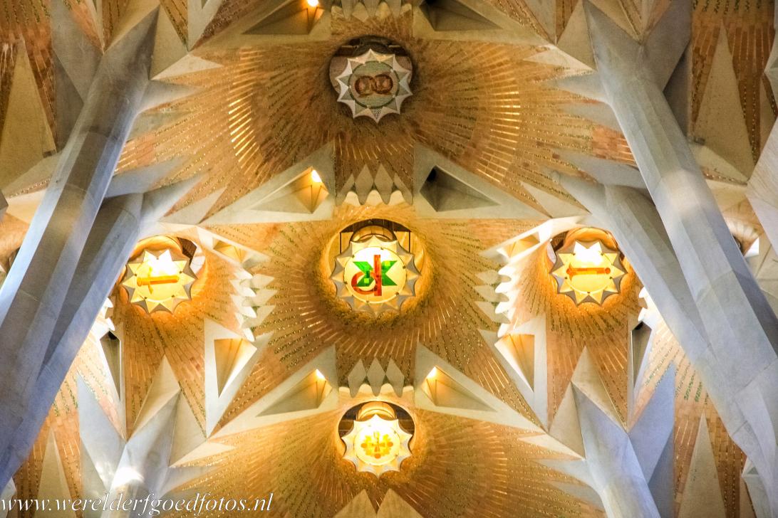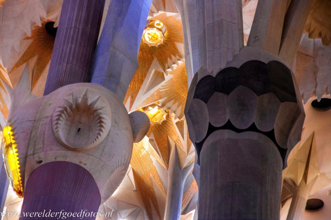Werk van Antoni Gaudí, Barcelona: De vertakkende gekleurde zuilen van de Sagrada Família weerspiegelen het idee van Gaudí, die vond dat het interieur van de Sagrada Família op een bos moest lijken. De Sagrada Familia is het meest belangrijke werk van Gaudí. Bij zijn dood in 1926 was pas een kwart van de Sagrada Familia gereed. Andere architecten namen de bouw van de Sagrada Familia over, zij werken volgens zijn originele ontwerpen en gipsmodellen.