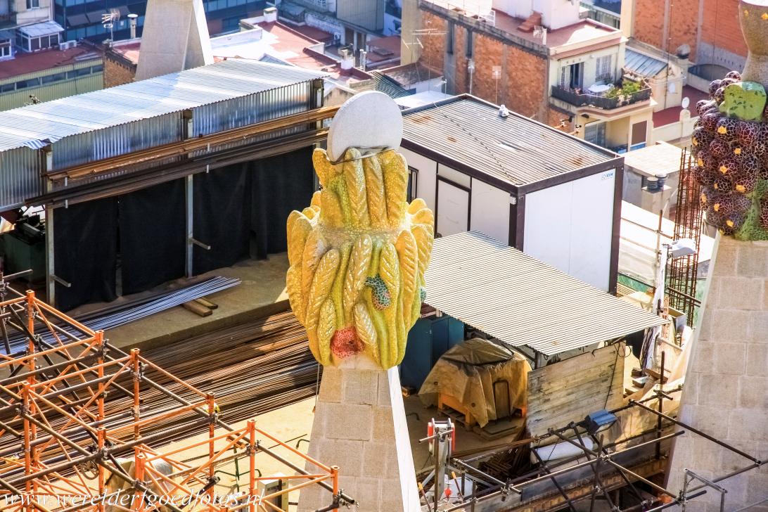 Werk van Antoni Gaudí, Barcelona: De Sagrada Família is na bijna honderd jaar nog niet af. De pinakels op de klokkentorens zijn gedecoreerd met kleurrijke mozaïeken van keramiek. De Sagrada Família heeft drie gevels, iedere gevel heeft vier klokkentorens. De torens zijn gewijd aan de twaalf apostelen. Hoewel de Sagrada Familia nog niet voltooid was, werd de kerk in 2010 door paus Benedictus XVI gewijd en uitgeroepen tot basilica minor.