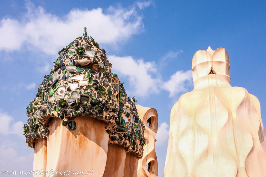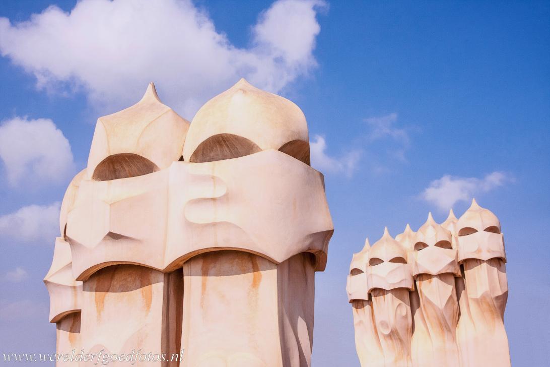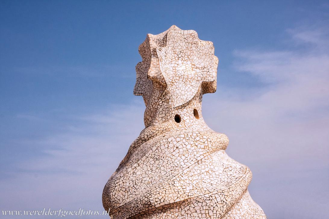 Werk van Antoni Gaudí, Barcelona: De schoorstenen op het dak van Casa Milà. De schoorstenen hebben bijzondere vormen en enkele ervan zijn gedecoreerd met kleurrijke mozaïeken. Tijdens zijn leven heeft Gaudí veel projecten gerealiseerd, zowel particuliere als openbare gebouwen. Casa Milà werd gebouwd in de periode 1906-1910, het is een van de meer bekendere werken van Antoni Gaudí. Casa Milà is een Werelderfgoed van UNESCO.
