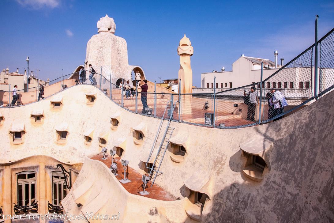 Werk van Antoni Gaudí, Barcelona: Het dak en de gevels van Casa Milà lijken op de golven van een woeste zee. Op het dak van Casa Milà staan schoorstenen en ventielatieschachten in de meest bijzondere vormen, zij werden gebouwd als 'espanta bruixes', de heksen verschrikkers, iets wat je vaker ziet bij huizen in Spanje, het is een oud gebruikt om te voorkomen, dat boze geesten het huis zouden binnen dringen.