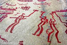 Rotstekeningen in Tanum: Rechts de bekende Geliefden van Vitlycke, de rotstekeningen van Vitlycke gaan veelal over de liefde en vruchtbaarheid. Van de rotstekeningen bij Tanum zijn die op de Vitlycke rots het grootst en het meest gevarieerd. De rots van Vitlycke is bedekt met meer dan 400 rotstekeningen, waaronder een fallische man met een bijl, vrouwen komen weinig voor.