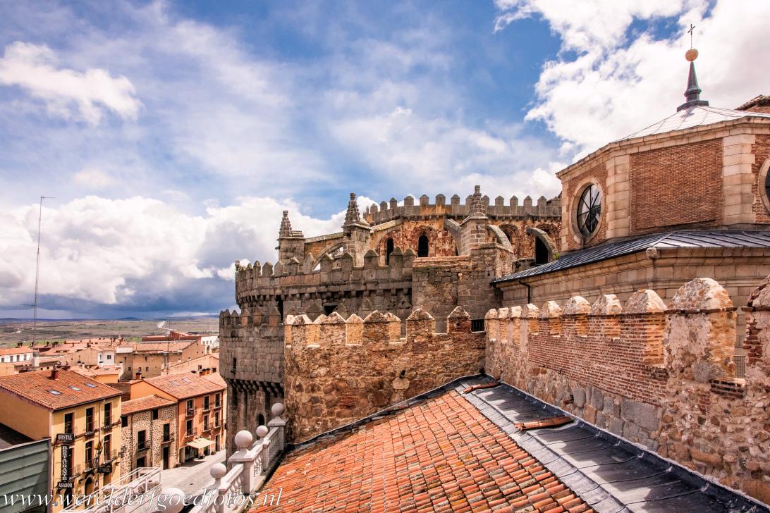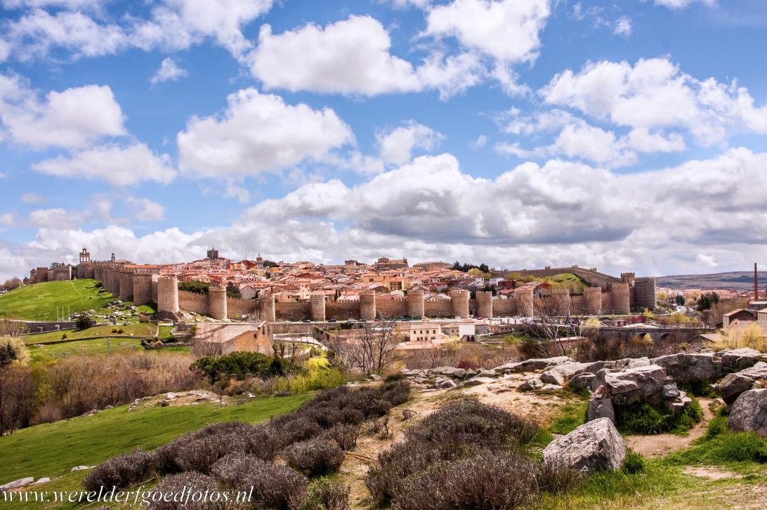 Oude stad van Ávila met de kerken buiten de muren: De oude stad van Ávila heeft de meest complete fortificaties van Spanje. Ávila, Stad van Heiligen en Stenen, werd in de 11de eeuw gesticht om het territorium van Spanje tegen vijandige aanvallen te beschermen. Ávila wordt ook tegenwoordig nog in zijn geheel omringd door middeleeuwse stadsmuren. De oudste delen van de muren stammen uit 1090. De stadsmuren van Ávila zijn gemiddeld 3 m dik en 12 m hoog en hebben 88 halfronde torens en 9 poorten. De kathedraal van Ávila is de op ttwee na oudste Gotische kathedraal in Spanje, de oudste is de kathedraal van Cuenca. De kathedraal van Ávila sluit met het koor aan op de muren van de stad en maakt deel uit van de fortificaties van Ávila. De religieuze bouwwerken staan zowel binnen als buiten de muren van de oude stad van Ávila. Een van de kerken buiten de muren van de oude stad van Ávila is de Basiliek van San Vicente. De 12de eeuwse Basiliek van San Vicente is een romaanse kerk. Eveneens buiten de muren staat de Hermitage Santa Maria de la Cabeza, die werd gebouwd in zowel de romaanse als in de mudéjarstijl. Ávila is ook de stad van Theresia van Ávila, een Spaanse mystica, een schrijfster, hervormster en non. Ávila ligt ca. 112 km van Madrid en 70 km van Segovia. De oude stad van Ávila met de kerken buiten de muren werd in 1985 een Werelderfgoed van UNESCO en staat op de Werelderfgoedlijst van UNESCO als: Old Town of Ávila with its Extra-Muros Churches.