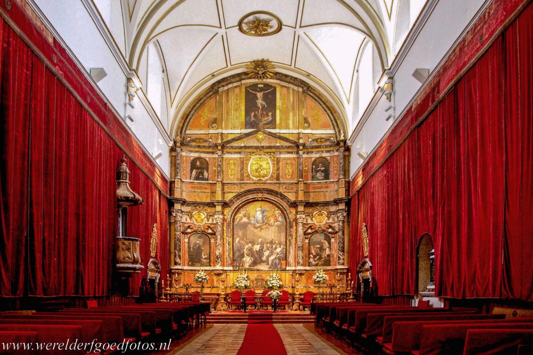 Oude stad van Salamanca: De collegezaal in de Universiteit van Salamanca, waar Fray Luis de León college gaf. In 1572 werd Luis de León tijdens een college gearresteerd en veroordeeld voor het vertalen van het Hooglied van Salomo naar het Spaans, dat destijds was verboden. In 1577 keerde hij terug naar de collegezaal, na vijf jaar als gevangene van de Inquisitie, opende hij zijn eerste college met de beroemde zin 'Dicebamus hesterna die', zoals we gisteren zeiden........