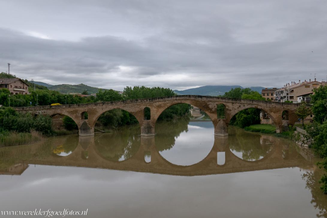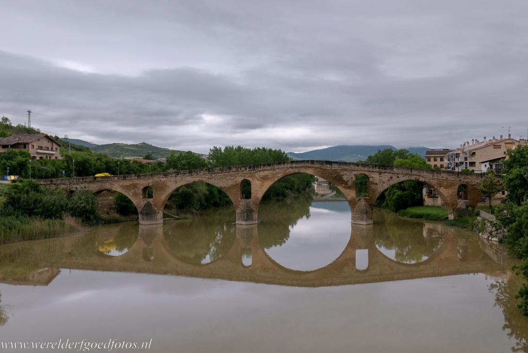Pelgrimsroutes in Frankrijk naar Santiago de Compostela: De romaanse brug in Puente la Reina. De Franse vertakkingen van de route naar Santiago de Compostela lopen via de Frans-Spaanse grens naar de stenen boogbrug in het Spaanse dorpje Puente la Reina en sluiten daar aan op de meeste routes in Spanje die naar Santiago de Compostela leiden. De voetgangersbrug in Puente la Reina was in het verleden de enige brug over de rivier de Arga. Puente la Reina (Brug van de Koningin) ligt tussen Estella en Pamplona op de route naar Santiago de Compostela.